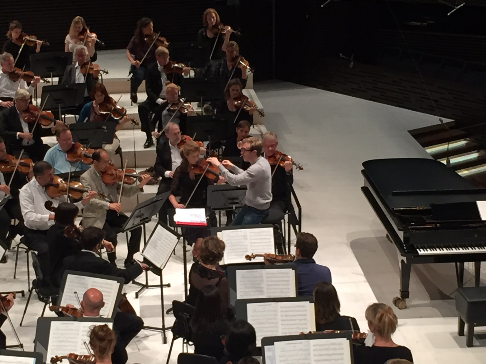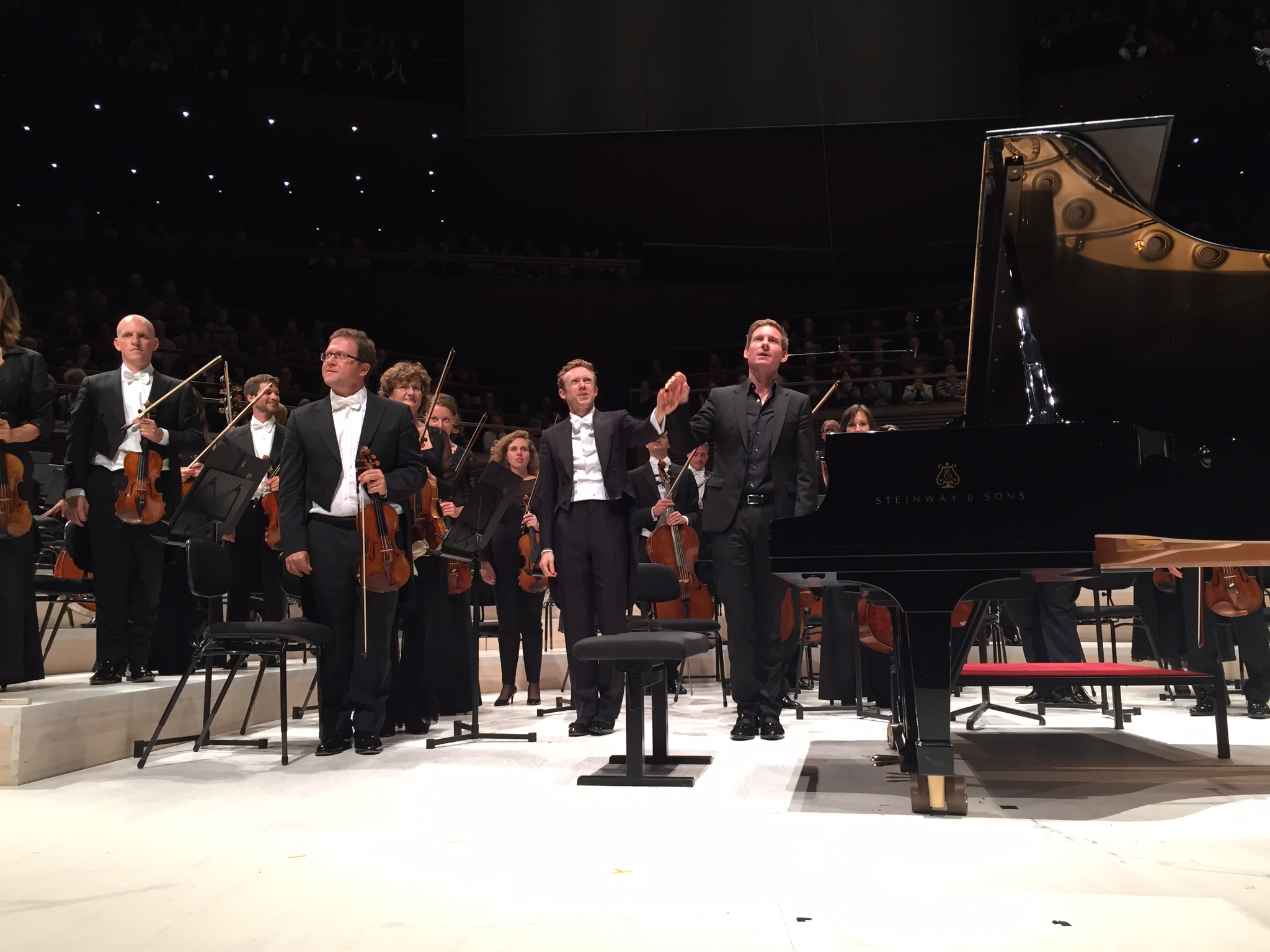 Daniel Harding, solisti Kristian Bezuidenhout ja orkesteri Mozartin 18. pianokonserton suurenmoisen esityksen jälkeen