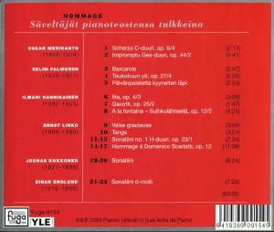 Muutamien yllämainittujen pianistien levytyksiä on julkaistu CD:llä Fuga-9154: