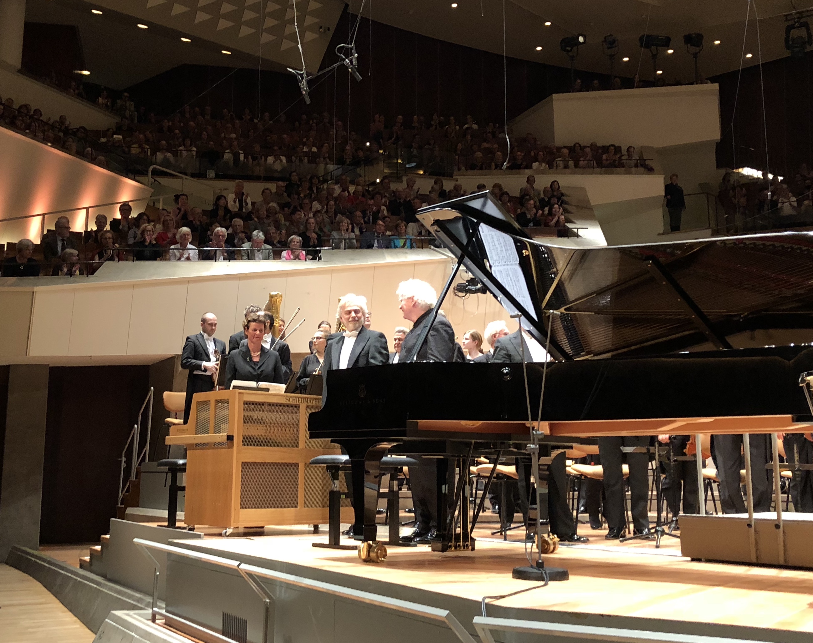 Toinen mainio tilaratkaisu oli orkesterin kakkospianon sijoittaminen ylös urkuparvelle, jolloin dialogi solistin kanssa sai tavallista merkittävämmän ulottuvuuden.
