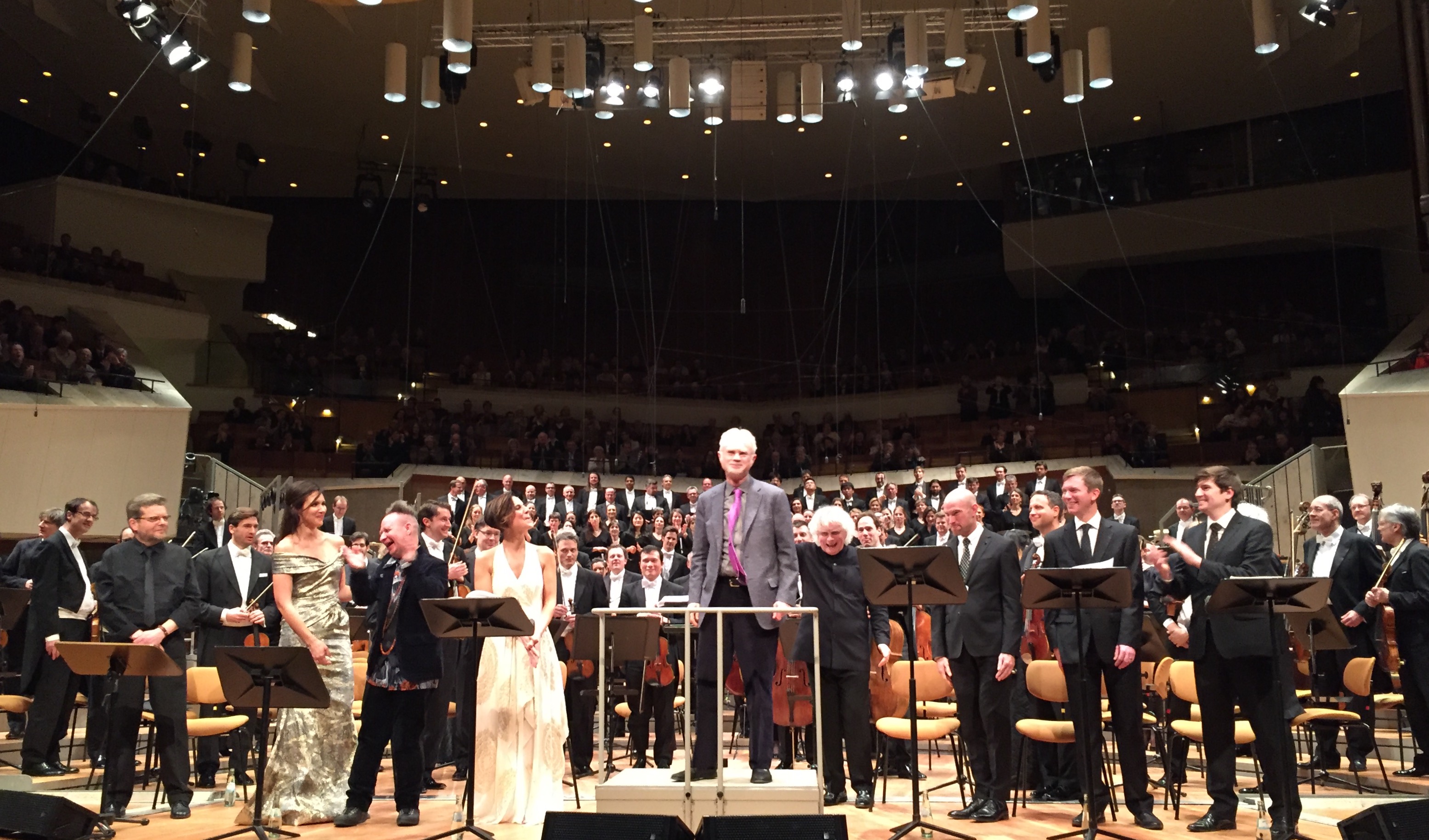 John Adamsin säveltäjäresidenssi Berliinin filharmonikoiden kanssa jatkui sir Simon Rattlen johdolla The Gospel According to the Other Mary -passio-oratorion huikealla konserttiesityksellä perjantaina. Kuva © Jari Kallio