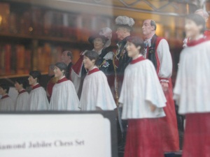 Evensong on yhtä yhteislaulua, tekstinlukua ja lyhyttä rukousta lukuunottamatta kokonaan kuoron laulama, läpisävelletty liturgia psalmeineen, rukouksineen ja magnificateineen. Musiikki on vaihtuvaa ja korkeatasoista – tänä iltana osia oli muun muassa Byrdilta ja Thomas Tallisilta. Tunnelma oli mykistävä. Koulutuksen, perinteen ja vankkumattoman rutiinin vaikutus näkyi välittömästi ääntämyksen jaloudessa, fraasien atakkissa ja muotoilussa, äänien instrumentaalisuudessa, korviahellivässä intonaatiossa ja dynamiikkojen yhtenäisyydessä – kuin urkuäänikertoja olisi vaihdettu.