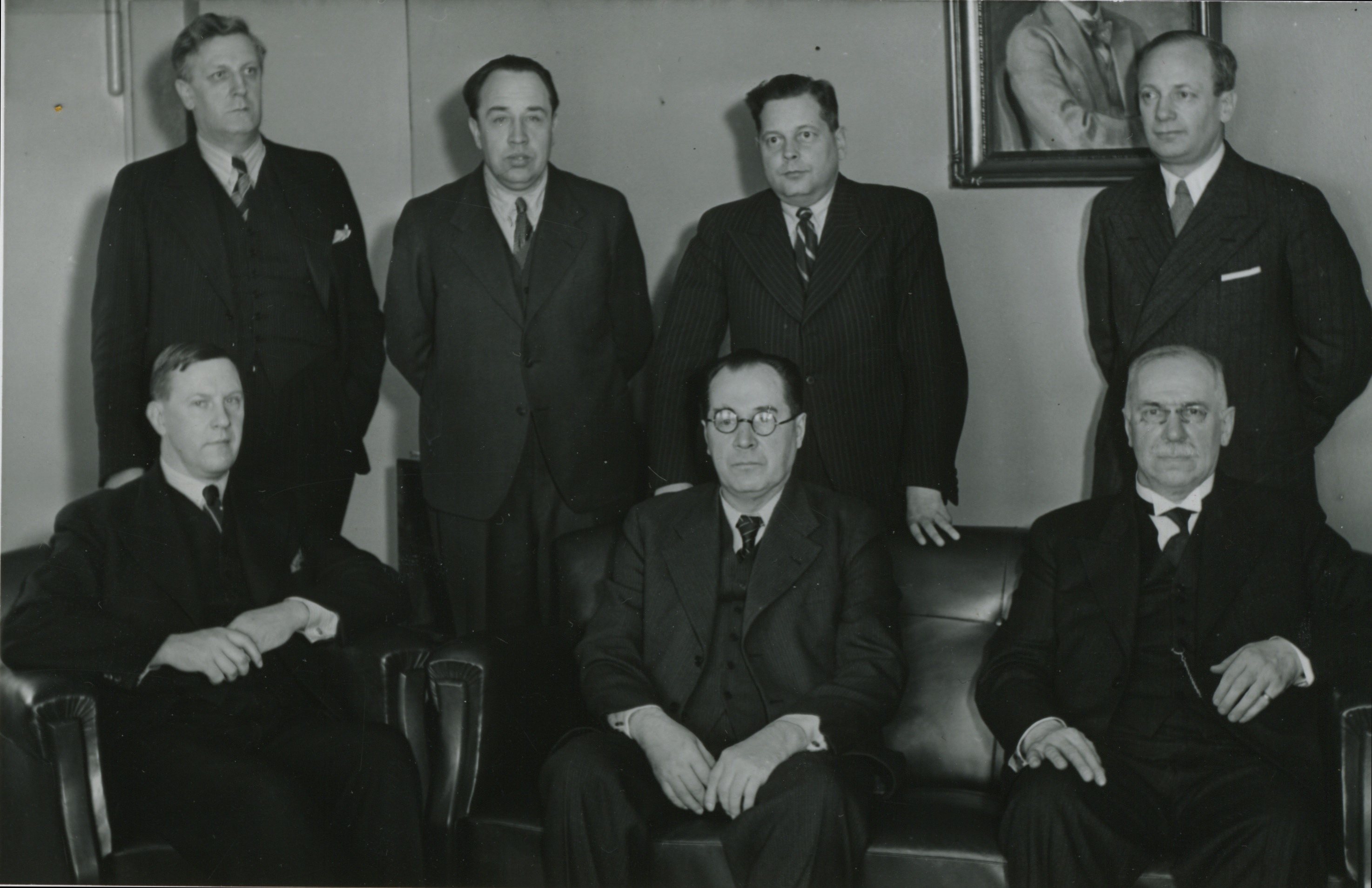Teoston johtokunta 1937. Vas. ylh. Ernst Linko, Martti ”Pyssy” Turunen, Sulho Ranta, Toivo Voss- Schrader, Bengt Carlson, Leevi Madetoja, Vihtori Suomalainen