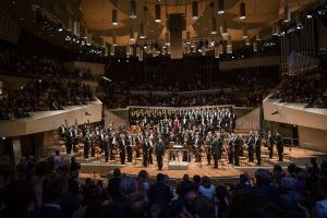 Väliajan jälkeen vuorossa oli Beethovenin yhdeksäs sinfonia, berliiniläisten ohjelmiston arkkityyppi. Sinfonian kamppailu kohti rauhan ja veljeyden iloa saa tietenkin aivan erityisen historiallisen kaiun juuri Berliinissä, Euroopan ja eurooppalaisuuden ytimessä.