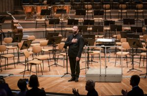 Kirill Petrenko vastaanottaa yleisön raikuvat suosionosoitukset perjantai-iltana Philharmoniessa. Kuva: Stephan Rabold