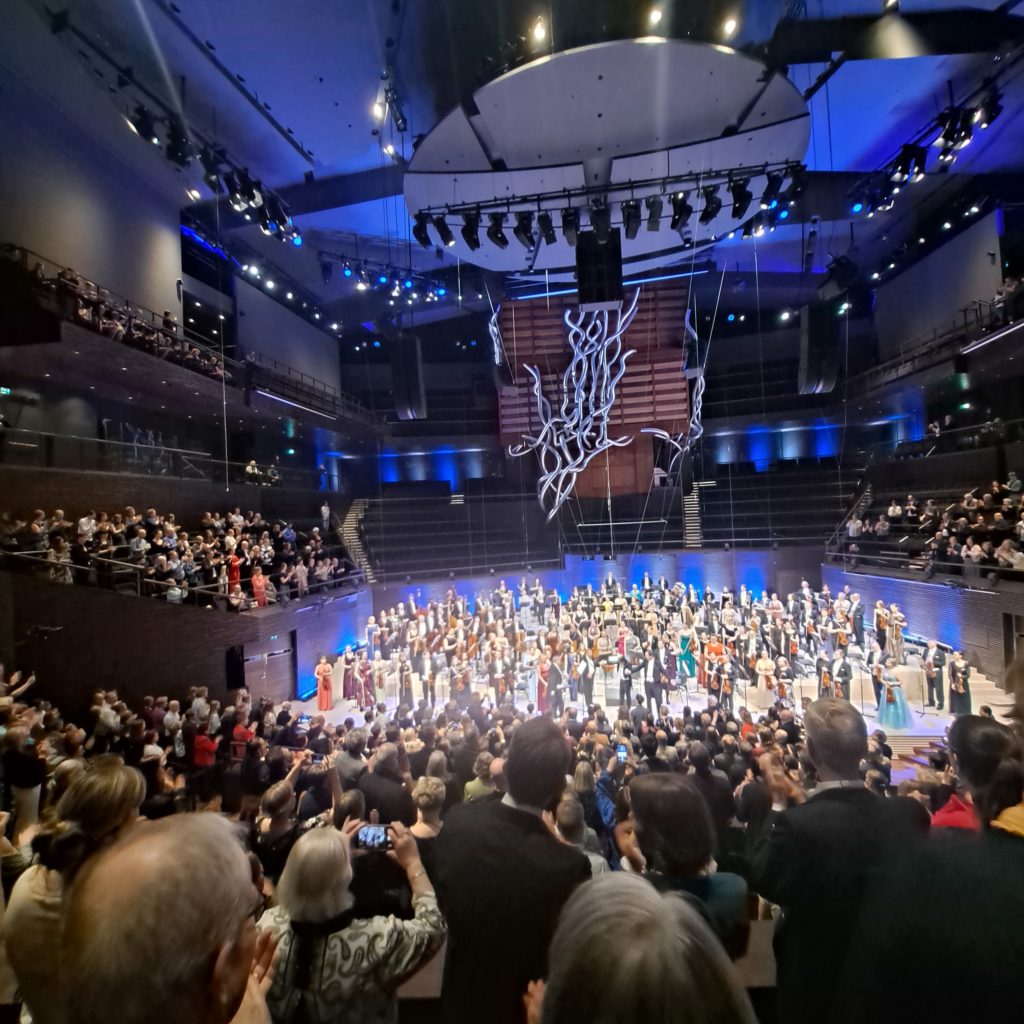 YS päätti juhlia satavuotista taivaltaan Musiikkitalossa aivan järkeenkäyvistä syistä. Eli yleisömäärä ei olisi mitenkään mahtunut yliopiston päärakennuksen juhlasaliin, ja siksi toiseksi soittajat halusivat kokea tämän salin erityisen orkesterille suosiollisen akustiikan. Silti ei voi liikutuksetta ajatella niitä lukemattomia kertoja, kun YS soitti vielä yliopistolla. Onhan siinä valtava perinne takana yltäen Paciukseen saakka – ei, vielä kauemmas Turun Soitannolliseen Seuraan, jota tutki aikoinaan muun muassa Einari Marvia. Yliopiston salissa kuulijat pääsivät myös läheisempään kontaktiin soittajien kanssa, jokainen voi sieltä tunnistaa kaverinsa ja itse aina musiikkitieteen opiskelijat sikäli kuin heitä oli joukossa. Nyt saatoin vain kirjoittaa HYMSin adressiin YS:lle: Yliopistomme musiikkielämän kulmakivi ja kruunu! Liioittelematta ihanaa, että olette olemassa, kun musiikki sinänsä on ajettu alas Helsingin yliopistossa. Näitä nyt ei kannattanut surra kun sangen laaja orkesteri valui lavalle, naispuoliset soittajat värikkäissä iltapuvuissa muodostaen hauskan akateemisen tilkkutäkin.