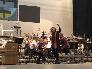 Kaija Saariaho ja Avanti! La Passion de Simonen harjoituksissa Tampere-talossa lauantaiba. Kuva: Jari Kallio