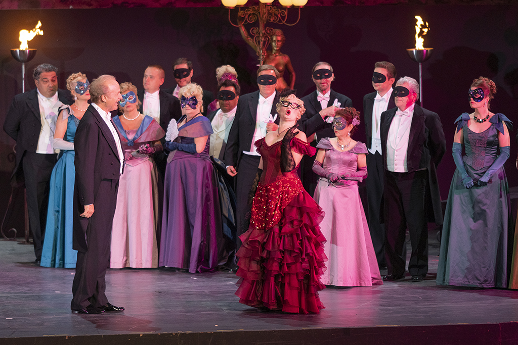 Kurt Schreibmayer (Frank), Anja-Nina Bohrmann (Adele).  Kuva ©Aleksi Mustonen / Savonlinnnan oopperajuhlat