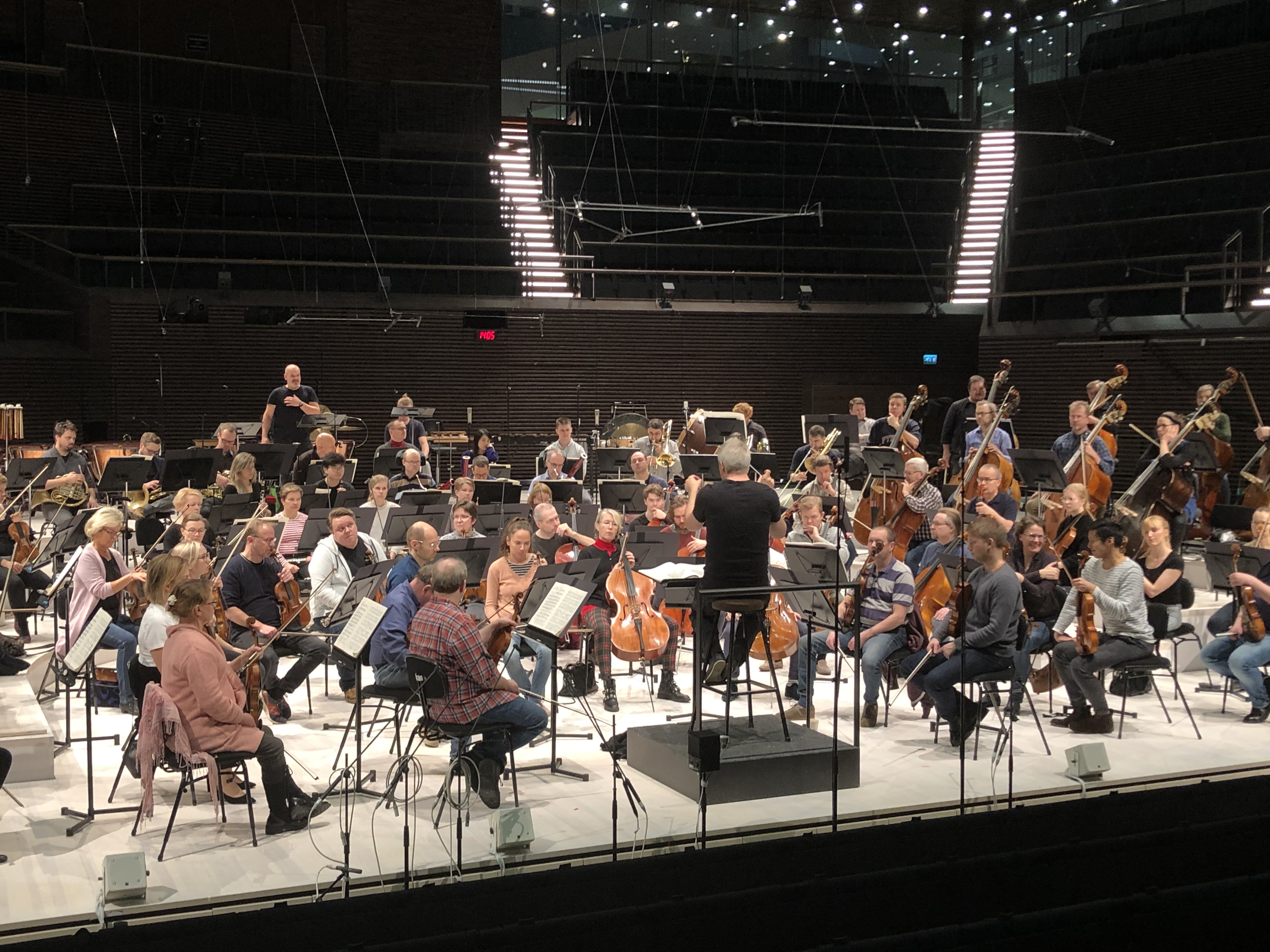 Hannu Lintu, Florian Boesch ja RSO Faustin tuomion harjoituksissa keskiviikkona. Kuva: Jari Kallio