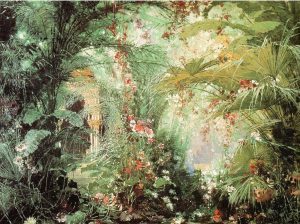 Brücknerin luonnos Klingsorin puutarhaksi Joukovskyn ideoiden mukaan vuodelta 1882.