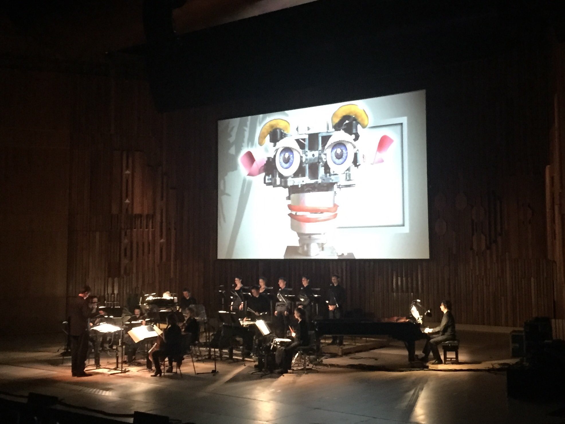 Britten Sinfonian lauantain konsertissa kuultiin myös Steve Reichin video-ooppera Three Tales. Kuva © Jari Kallio.