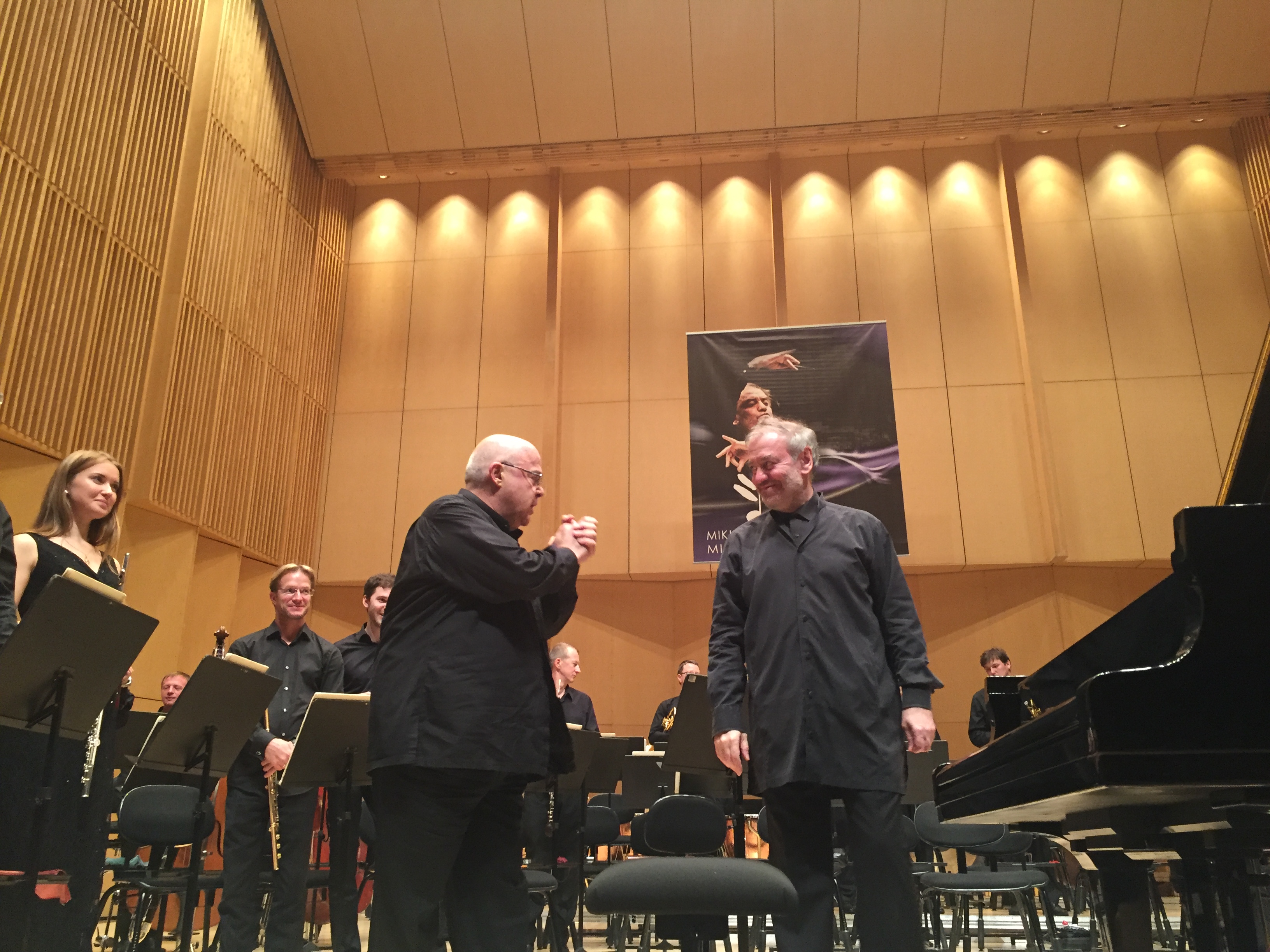 Alexander Toradze, Valeri Gergiev ja Mariinski-teatterin orkesteri Stravinskyn konserton jälkeen Mikkelissä. Kuva Jari Kallio.