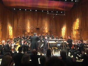 Väliajan jälkeen kuultiin The Desert Music, Reichin liki tunnin mittainen suurteos orkesterille ja kuorolle. Konserttimestarin rooli tässä teoksessa lankeaa ykkösmarimballe, joka johtaa keskelle lavaa sijoitettua lyömäsoittimistoa, jonka ympärille jouset on ryhmitelty kolmeksi antifonaaliseksi kuoroksi. Puupuhaltimet ja vasket tukevat laulajia, joita oli nyt Barbicanin lavalla kymmenen. Instrumenttien sijoittelu assosioitui vahvasti Bartókin Musiikkiin jousille, lyömäsoittimille ja celestalle.