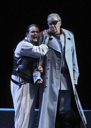 Valkyyriassa keskiössä on vapaan ihmissuvun syntymisen vaikeus, uuden maailman perustava ristiriita vanhaan jumalten ulottuvuuteen. Kansallisoopperassa ensimmäistä kertaa vierailevat Terje Stensvold ja Catherine Foster luotasivat vaikuttavasti Wotanin ja Brünnhilden jumalhahmoja: Stensvoldin uhkea baritoni veisti hienon muotokuvan Valhallan kaikkivoipasta isännästä, joka äärimmäisten ristiriitojen repimänä alistuu järkähtämättä osaansa ”sopimusten orjana.” Fosterin Brünnhilde ihastutti tyttömäisellä, impulsiivisella karismallaan, joskin valkyyrian äänestä uupui roolin kaipaamaa leikkaavuutta. Lilli Paasikivi teki illan mieleenpainuvimman roolisuorituksen hykerryttävän ilmeikkäänä ja iskevänä Frickana, Wotanin hyytävänä puolisona, joka edustaa jumalten maailman täydellisen jäykkää, tunteiden ja moraalin yläpuolelle jäädytettyä systeemiä. Valhallaa värittivät myös nekrofiliset, hekumoivat amazonit, neitseelliset valkyyriat, jotka jumalmaailman asukkaina eivät olleet velvollisia pitämään mitään pyhänä. Yhtenä kahdeksasta valkyyriasta teki Kansallisooppera-debyyttinsä myös tämän vuoden Timo Mustakallio -laulukilvan voittaja Miina-Liisa Värelä, jonka äänen dramaattinen räjähtävyyspotentiaali ja hersyvä karisma saivat odottamaan malttamattomasti jatkoa. Epäilemättä Värelää piakkoin kuullaan vastuullisemmissakin rooleissa.