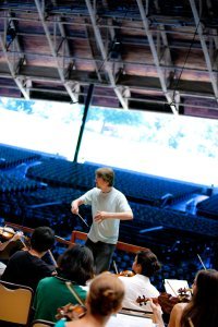 Beethovenin laulaminen kuoron bassorivissa oli upea päätös kesälleni Blossomissa, ja kokemus antoi myös aivan uutta näkökulmaa kapellimestarin työhöni – laulajana teoksesta löytää aivan eri asioita kuin sellistinä tai ”vain” johtajana! Rankkasateesta huolimatta paviljonki oli tupaten täynnä yleisöä, ja nurmellakin oli yllättävän paljon porukkaa sateenvarjojen katveessa. Ennen finaalia sade onneksi hellitti ja ihmisäänet pääsivät täysiin oikeuksiinsa Schillerin Oodissa Ilolle. Esityksen päättyessä olin niin tunnelmassa että kuorokansioni jäi pitkäksi aikaa eteeni kun koko muu kuoro oli jo omansa laskenut alas. Mahtava elämys tuosta pikku etikettivirheestä huolimatta. Freude!