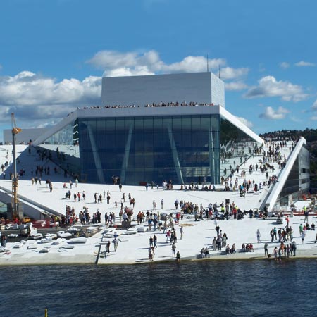 Öljyisä ja kalaisa Norja on tunnetusti kallis maa, mutta käynti kansallisoopperan ja -baletin uudessa talossa ei käy kukkarolle: liput esityksiin maksavat vähän yli kympistä sataan euroon. Arkkitehtifirma Snøhettan suunnittelema häkellyttävän hieno rakennus avattiin Oslo-vuonon rannalle kaksi vuotta sitten, ja kansa tuntuu löytäneen paikalle – jos ei esityksiin niin vaikkapa ottamaan kesäisin aurinkoa talon katolla.