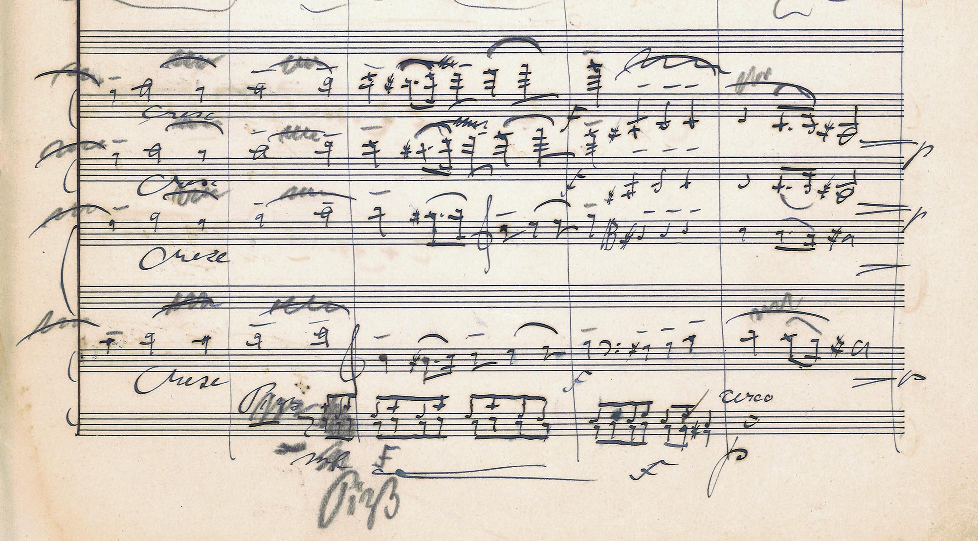 Sibelius teki IV sinfonian käsikirjoitukseen muutoksia lyijykynällä ennen teoksen julkaisuprosessia.